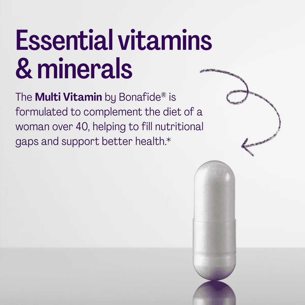 A multivitamin that includes essential vitamins and minerals selected to complement the diet of a woman over 40, helping to fill nutritional gaps and support better health.*